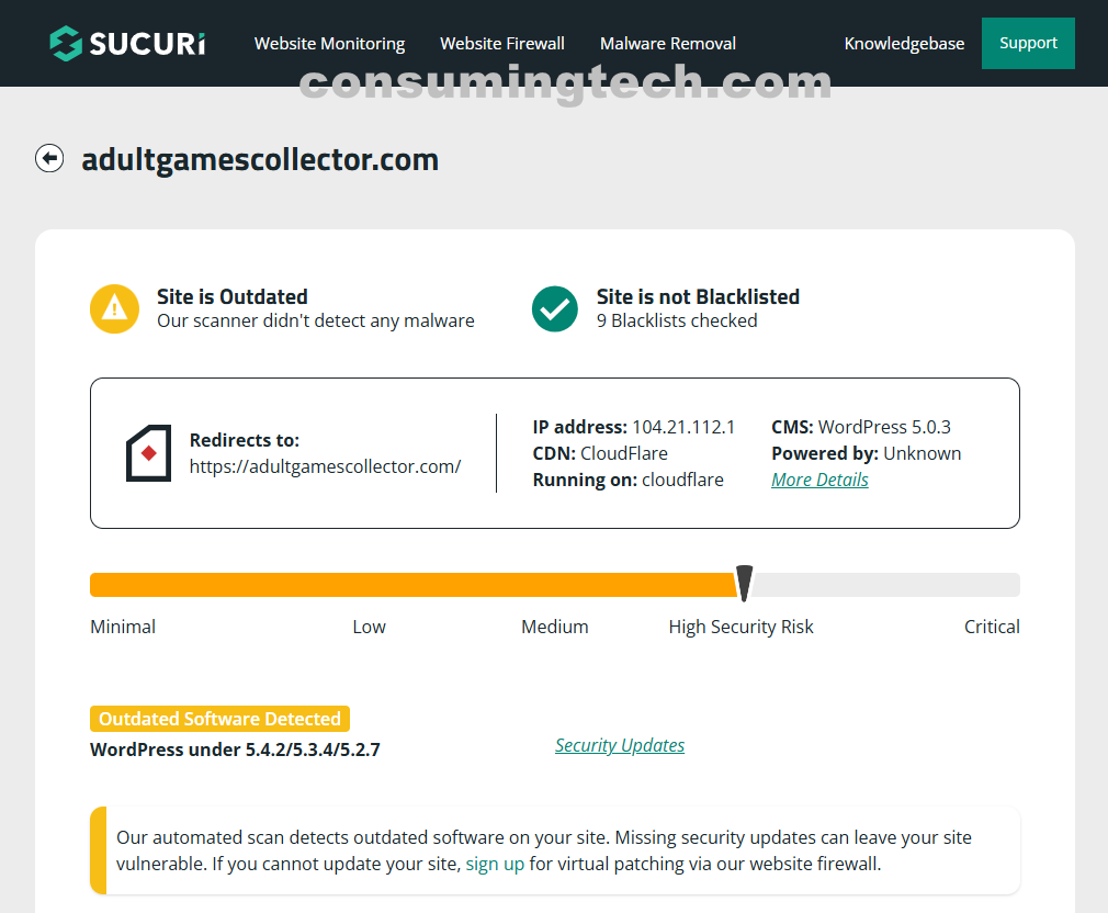 I checked adultgamescollector.com on Sucuri, and it returned as a medium security risk.