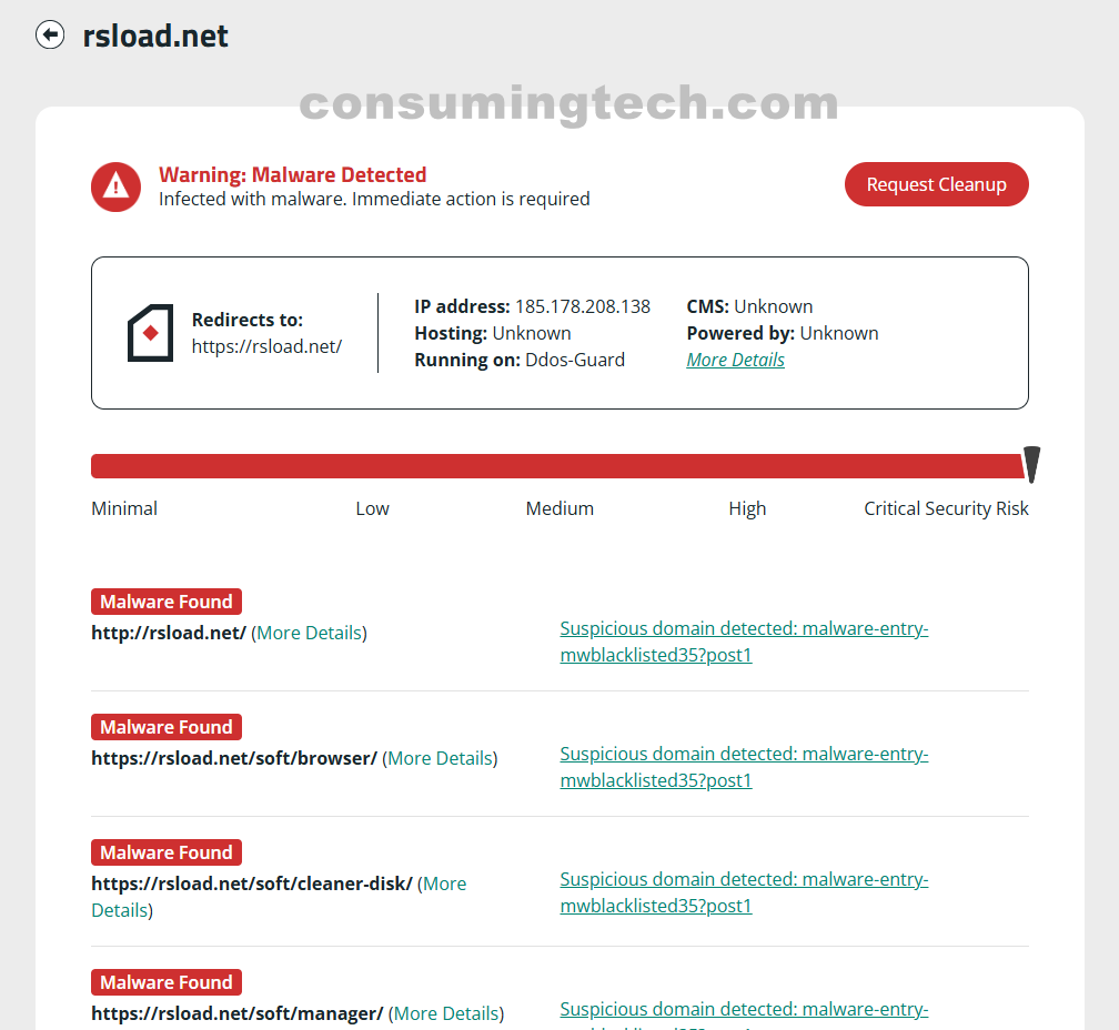 I checked rsload.net on Sucuri, and it returned as a critical security risk.