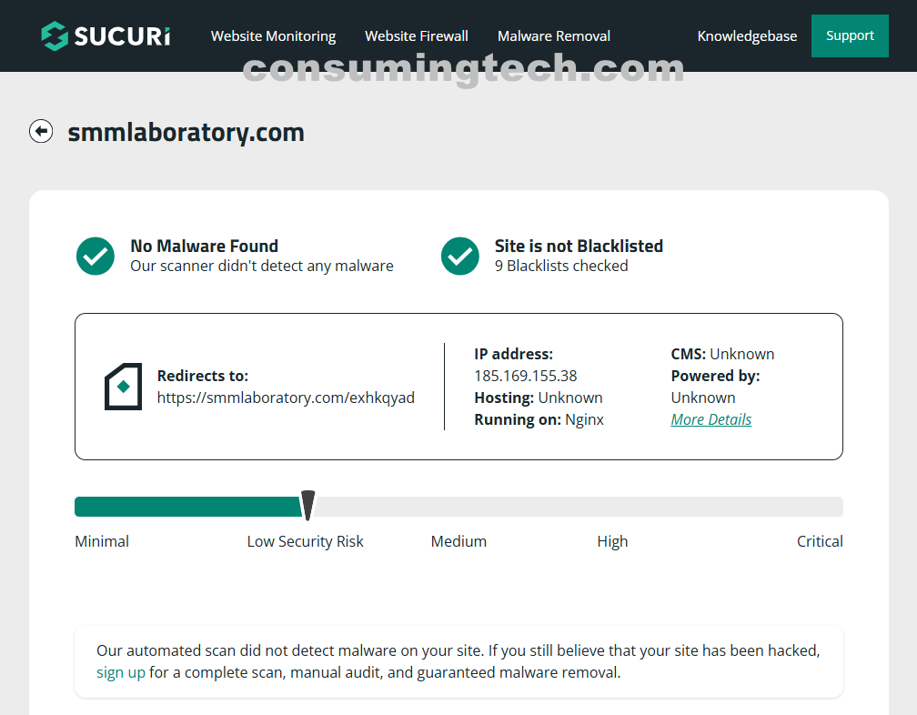 I checked smmlaboratory.com on Sucuri, and it returned with no issues.