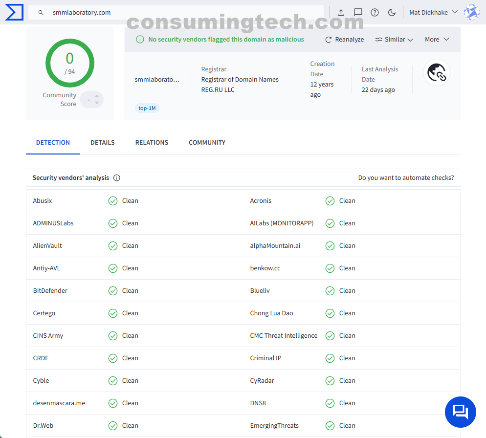Further, smmlaboratory.com passed all blocklist engines on URLVoid.