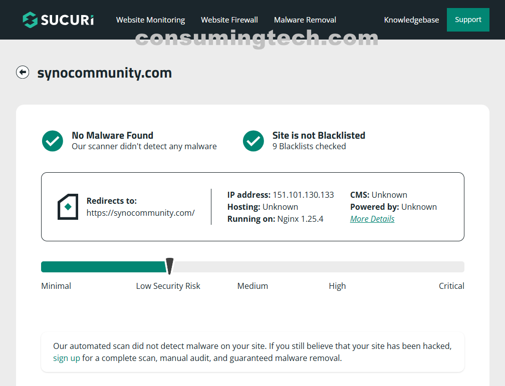 I checked synocommunity.com on Sucuri, and it returned with no issues.
